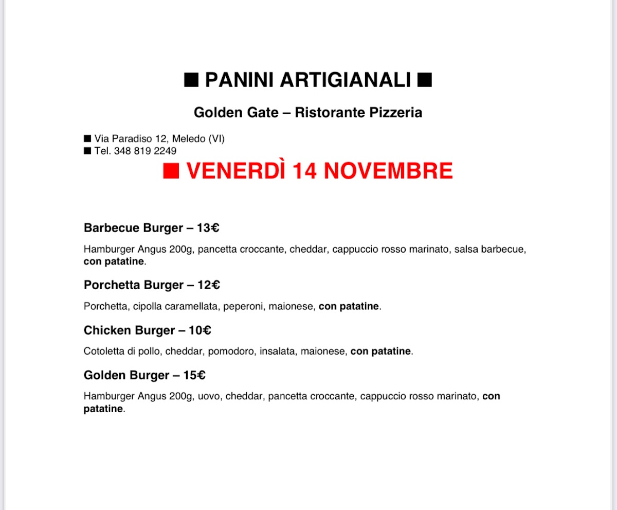 With such a diverse and mouthwatering menu, Bar Ristorante Pizzeria New Golden Gate ensures every visit is a delightful culinary experience.